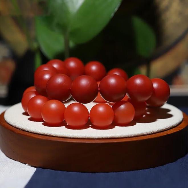 在《本草纲目》中就有玛瑙安魂魄、明耳目的记载。现代矿物学研究证实,天然南红含有铁、锌、锰等人体必需的微量元素,通过与皮肤接触产生微循环刺激。特别是凉山南红因其特殊的致密结构,导热系数与人体体温相近,冬季佩戴时不会产生冰凉不适感。建议每天佩戴时用拇指轻转珠串,这种类似按摩的动作能刺激手腕处的内关、神门等穴位,帮助缓解现代人常见的手腕疲劳问题。藤椅的弧形靠背则符合人体工程学设计,45度倾斜角度能让腰椎自然放松,搭配可拆卸的亚麻坐垫,四季使用都舒适宜人。