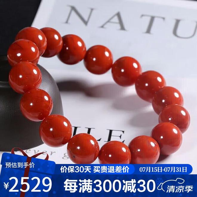 石玥珠宝收藏级12-13mm凉山南红玛瑙手串转运珠手链男女士款 水晶玛瑙